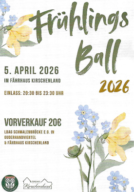 Am 05.04.2026 findet wieder der traditionelle Frühlingsball im Kirschenland statt. Organisiert wird er von unseren Jungschützen mit viel Freude und Elan. Karten im Vorverkauf gibt es ab sofort im Fährhaus Kirschenland und LBAG Schmalenbrücke E.G. in Guderhandviertel.